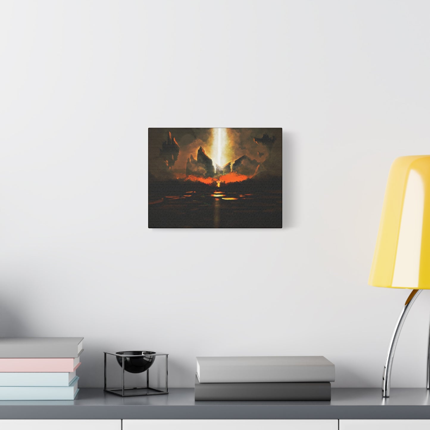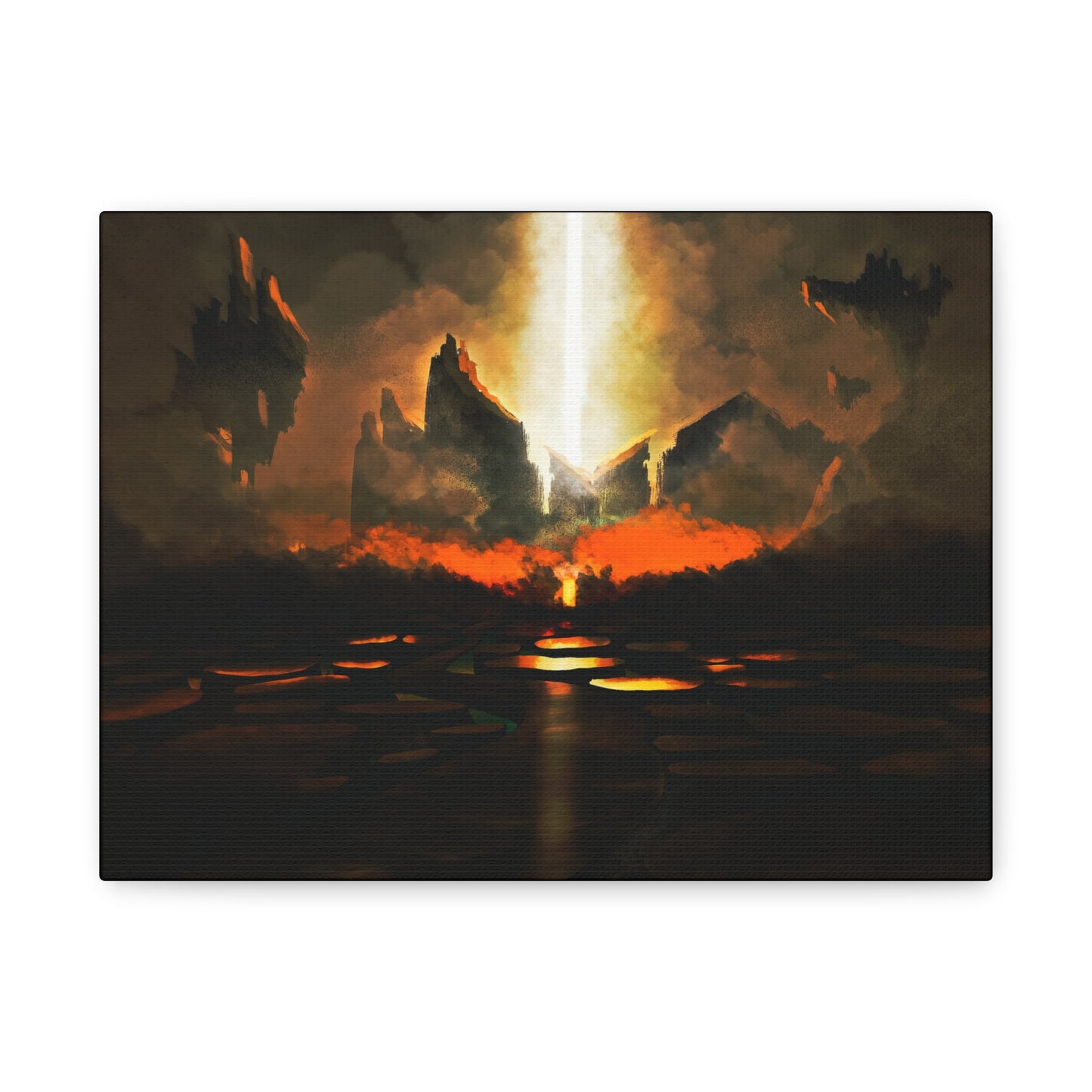 Inspired by Matthew 16:18 — “...and the gates of hell shall not prevail against it” — this artwork evokes the moment where darkness is confronted by the unstoppable glory of Heaven. The scorched earth and glowing molten pits beneath hint at judgment and purification, while the divine beam above offers hope, justice, and deliverance.
